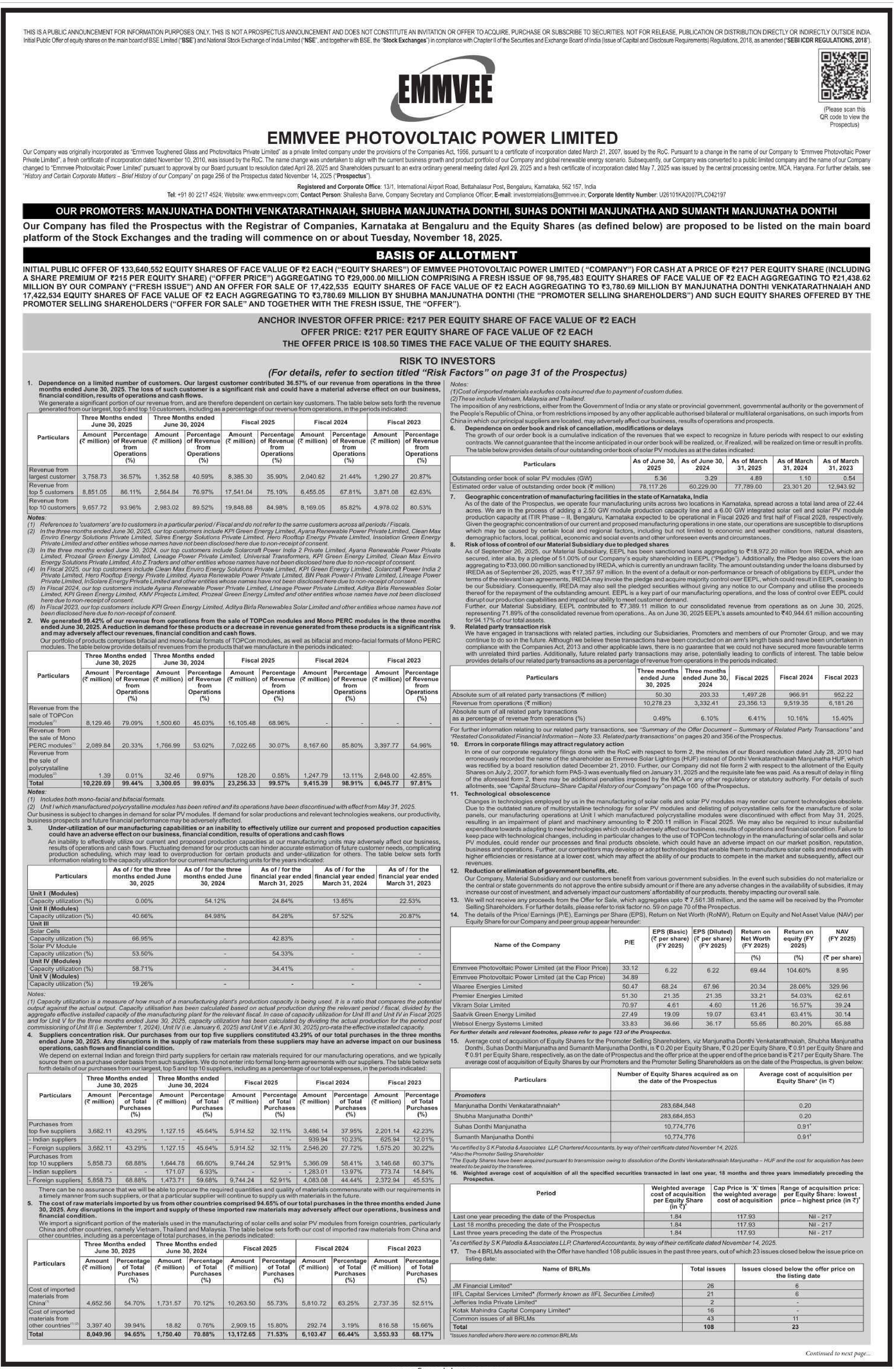 | Emmvee Photovoltaic Power Limited | 34.9 | 2.00 | |