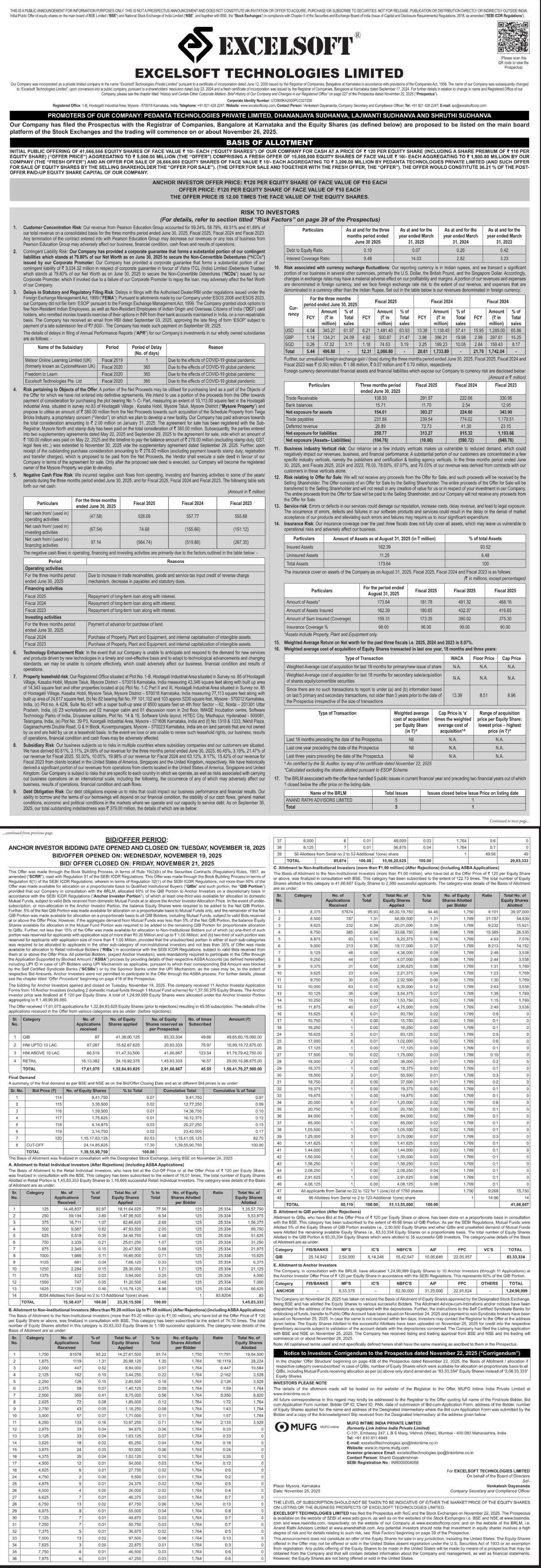 Excelsoft Technologies Listing Price