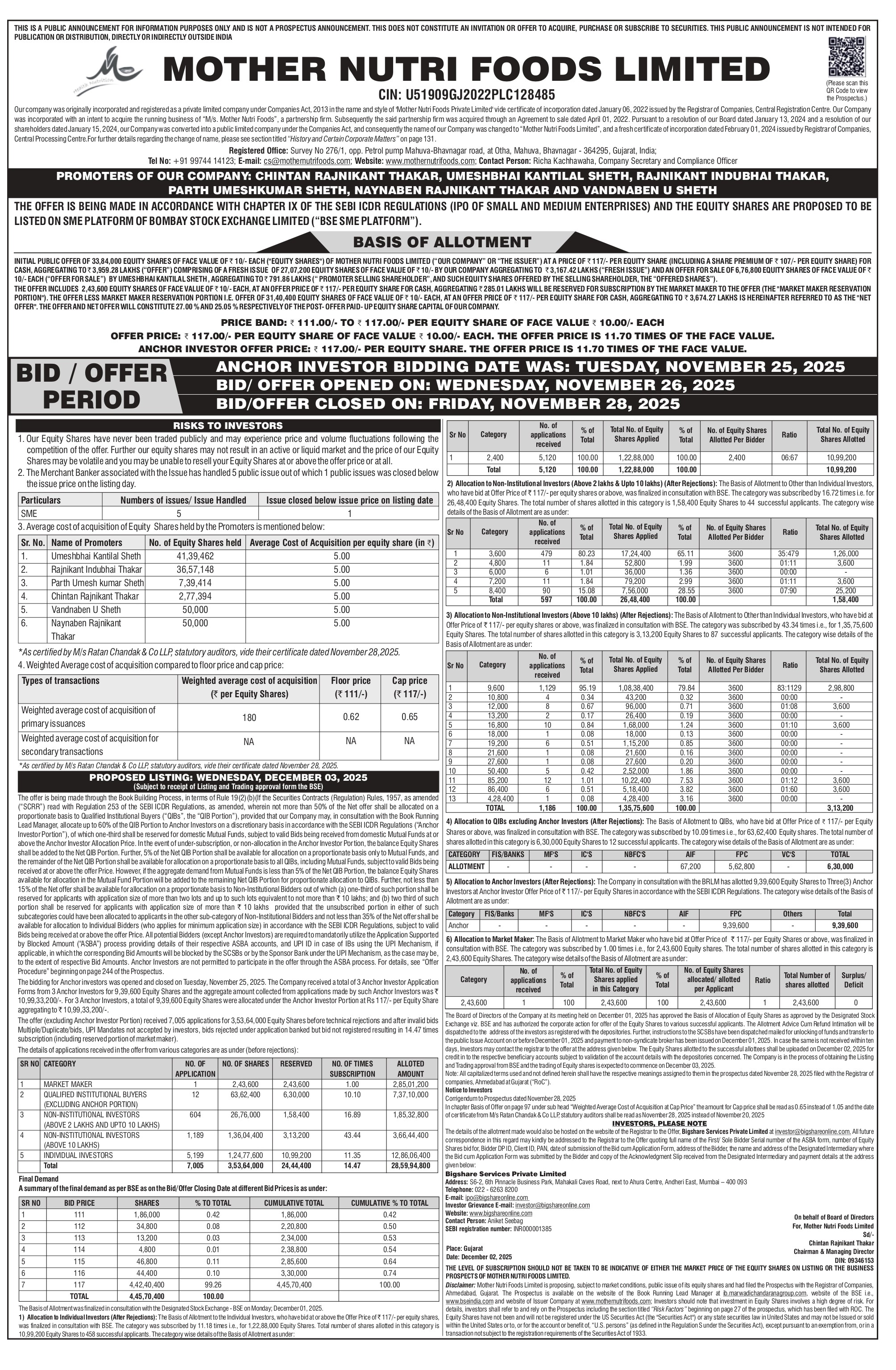 | Reserved for Market Maker | 2,43,600 shares (aggregating up to ₹2.85 Cr) |