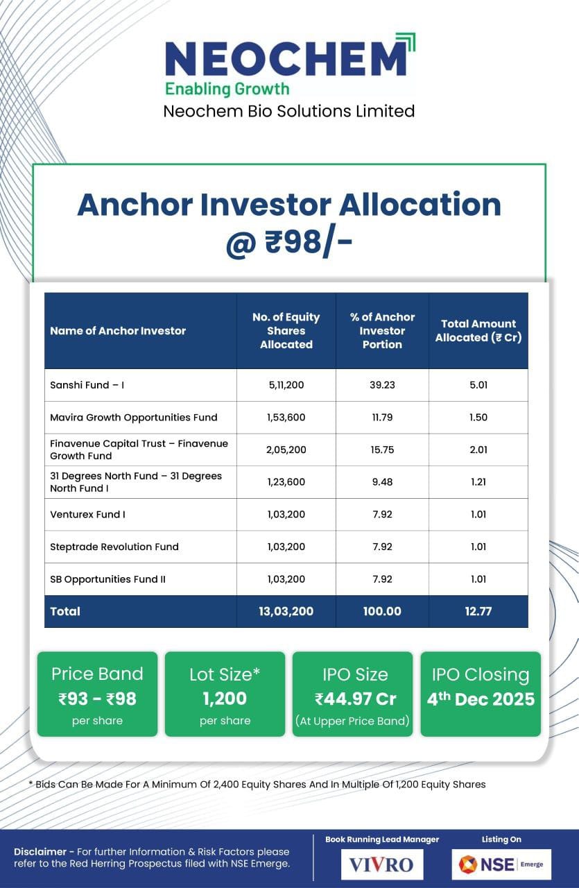 | Neochem Bio Solutions Limited | 15.85 | 10.00 | |