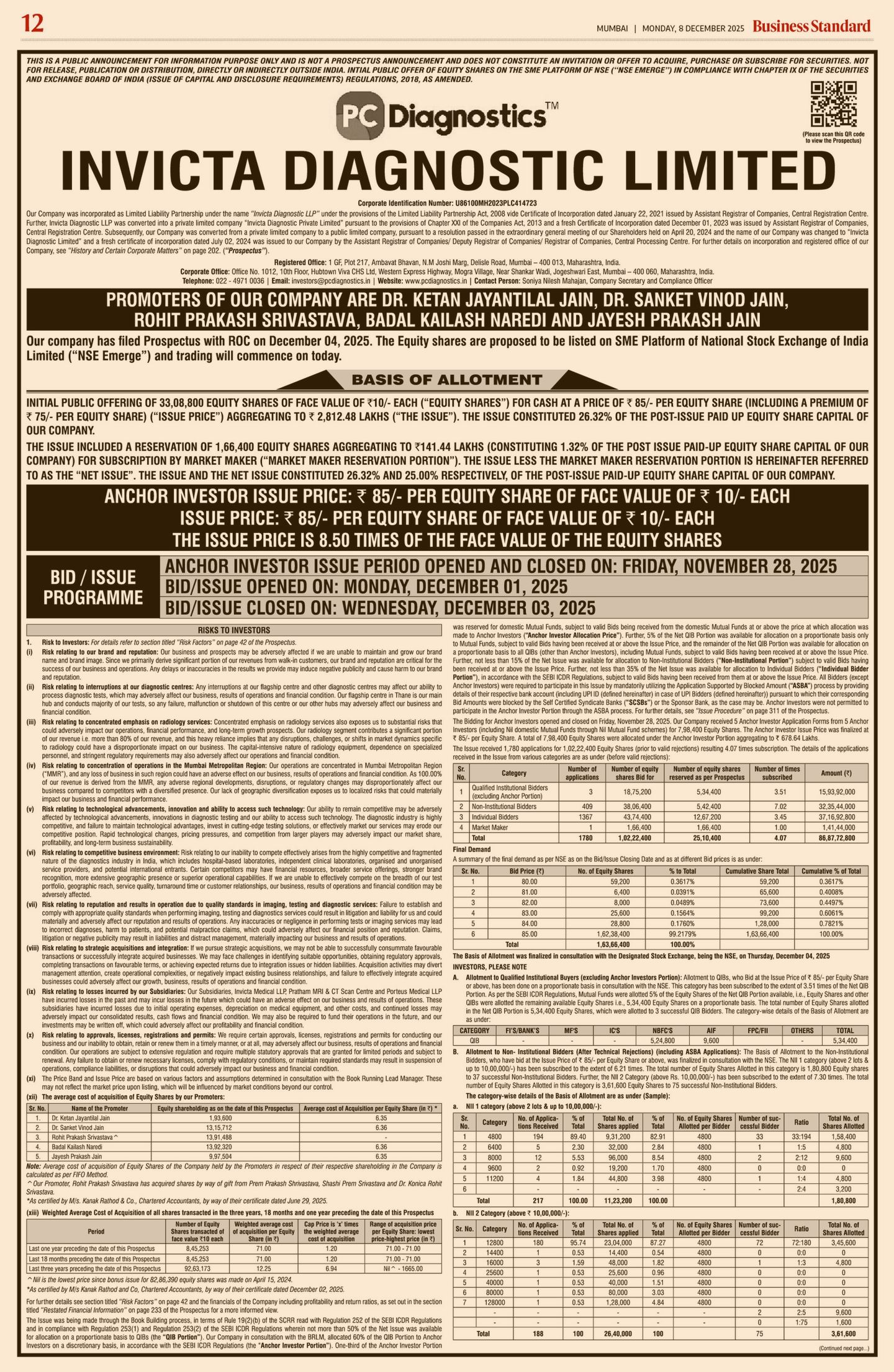 High Geographic Concentration in MMR: All diagnostic operations and 100% of revenue are concentrated in the Mumbai Metropolitan Region. Any adverse economic, regulatory, or healthcare-related developments in this single region could significantly affect business performance, growth, and financial stability.